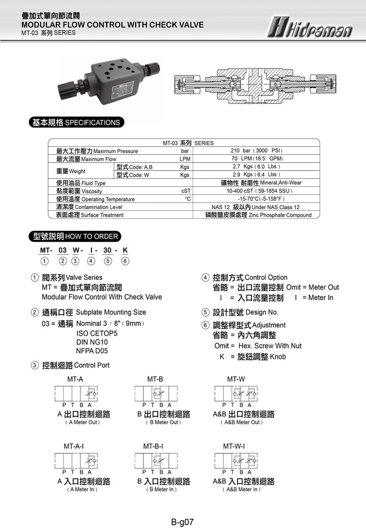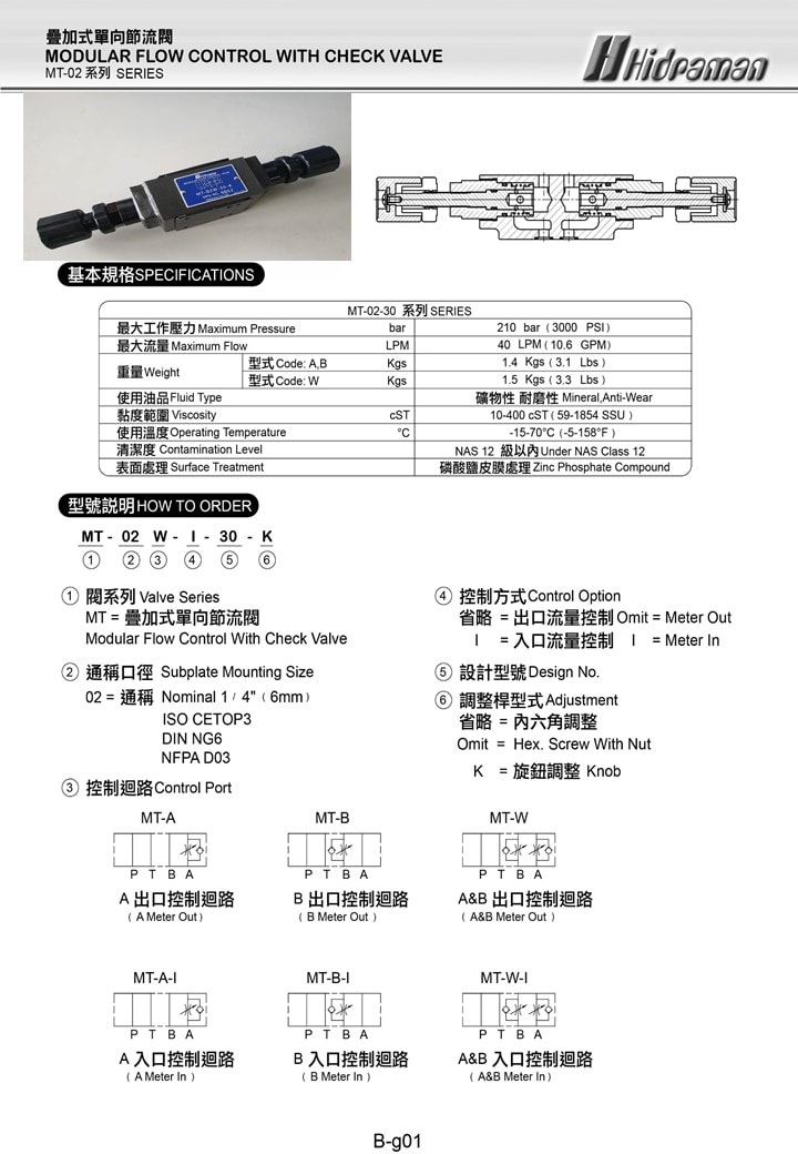 MT=MODULAR FLOW CONTROL WITH CHECK VALVEMPC