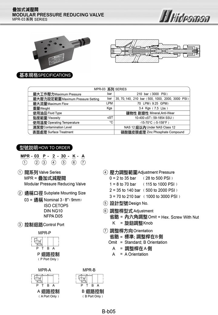 MPR -02 / MPR -03 Maximum Pressure: 210 BAR ( 3000 PSI )