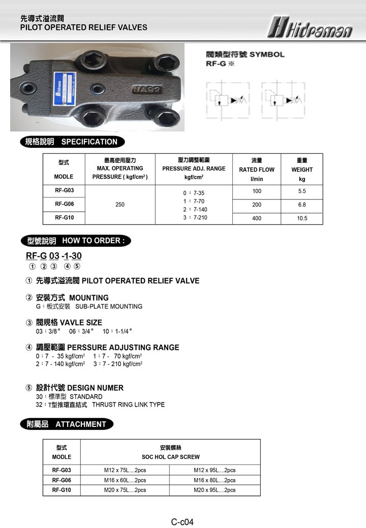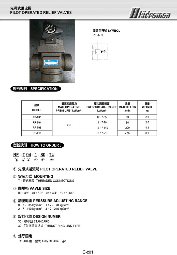 RF-T MAX. OPERATING PRESSURE(kgf/CM2): 250 RF-G MAX. OPERATING PRESSURE(kgf/CM2): 250