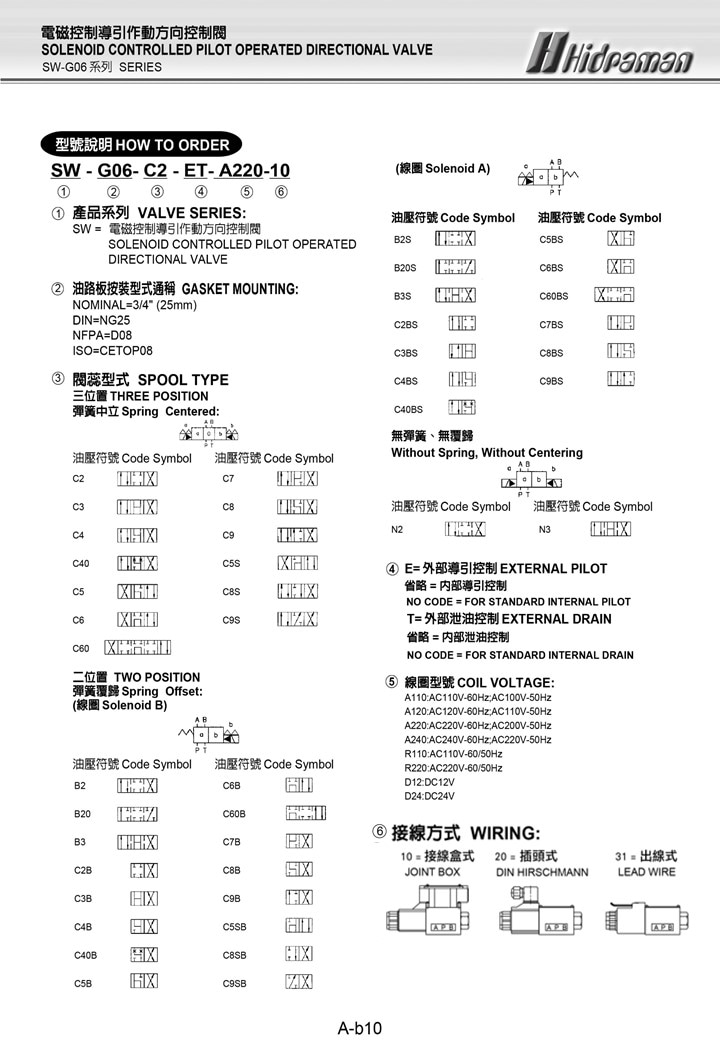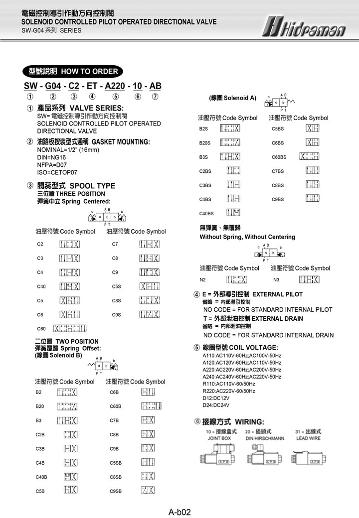 SW = SOLENOID CONTROLLED PILOT OPERATED DIRECTIONAL VALVE