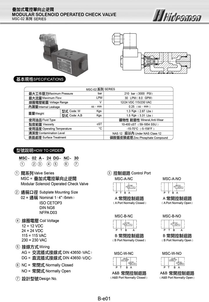 MSC = MODULAR SOLENOID OPERATED CHECK VALVE